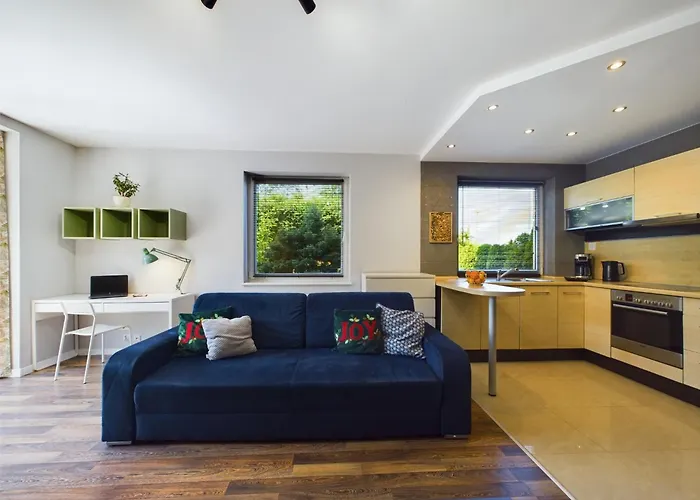 Dit appartement biedt tevens een kitchenette met een koelkast, een oven en keukengerei plus koffie- en theevoorzieningen. De accommodatie is op steenworp afstand van Przytulna bushalte.